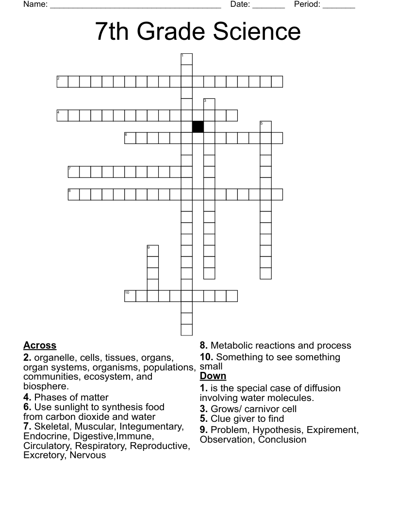 Are you looking for a fun and educational way to reinforce your 7th grader’s knowledge of science cells? Look no further! Our 7th Grade Science Cells Crossword Printable is the perfect resource to engage your child in learning.