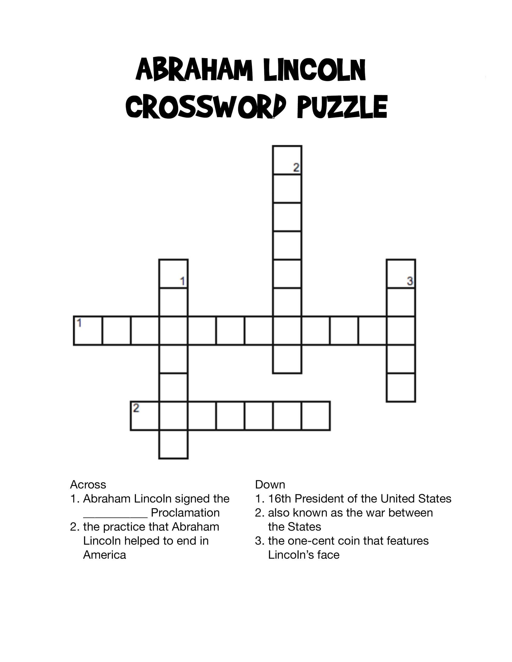 Abraham Lincoln Printable Crossword