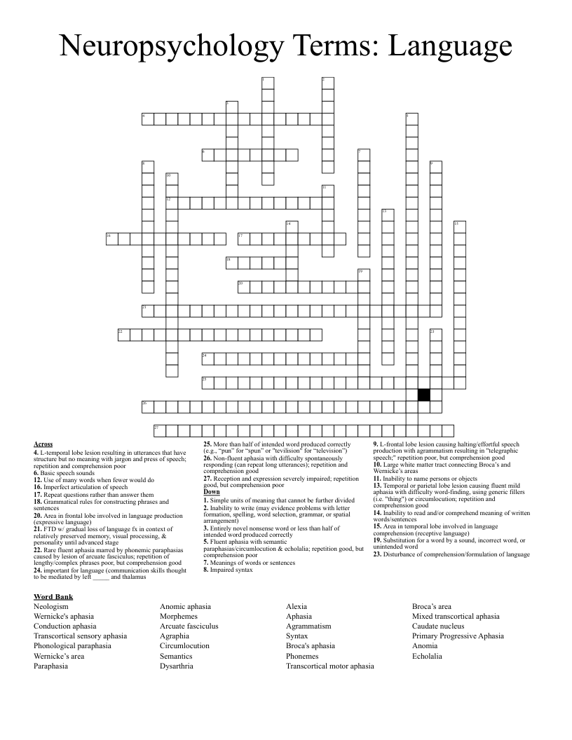 Brocas Aphasia Crossword WordMint