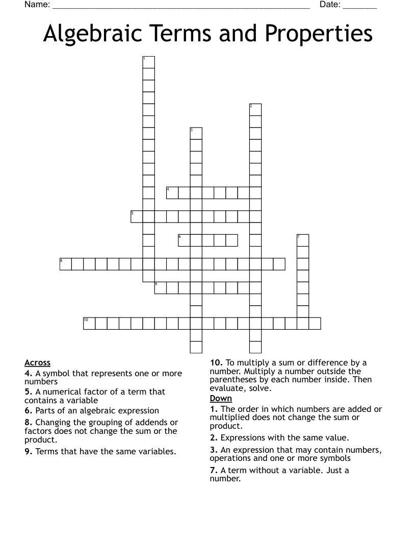 Algebraic Terms And Properties Crossword WordMint