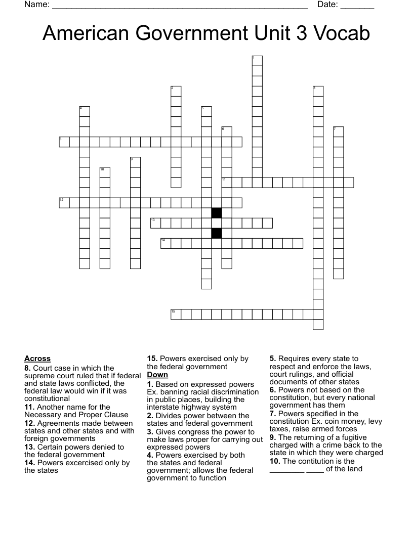 Ap Us Government Crosswords Printable Unit 3