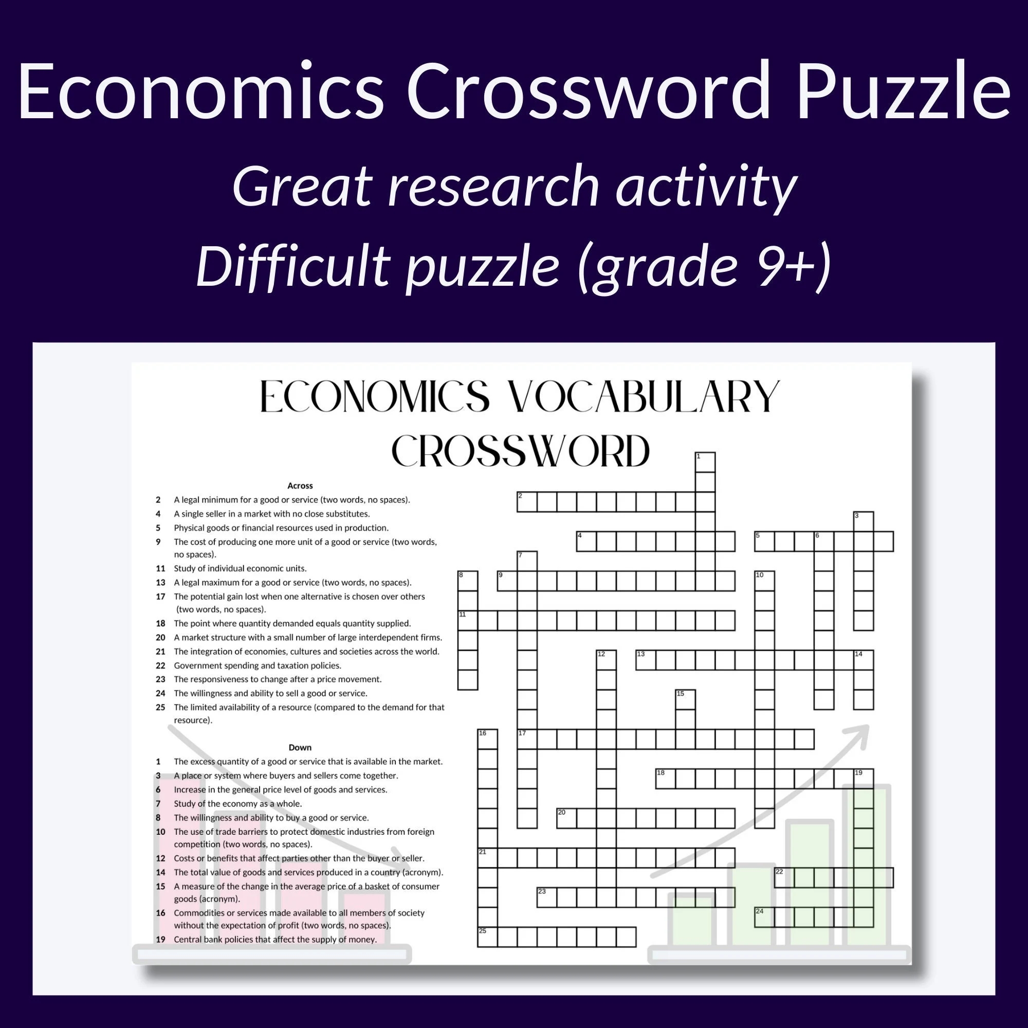Economics Vocabulary Crossword Puzzle microeconomics And Macroeconomics To Reinforce Learning Or Build Vocab Best For Adults Or Teenagers Etsy