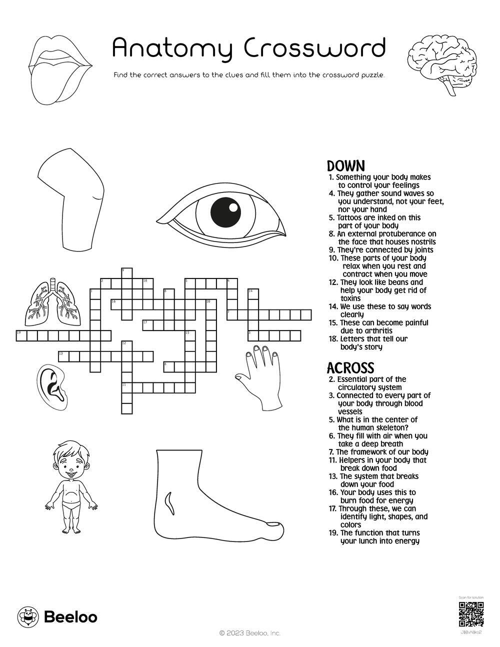 Anatomy Crossword Beeloo Printable Crafts And Activities For Kids