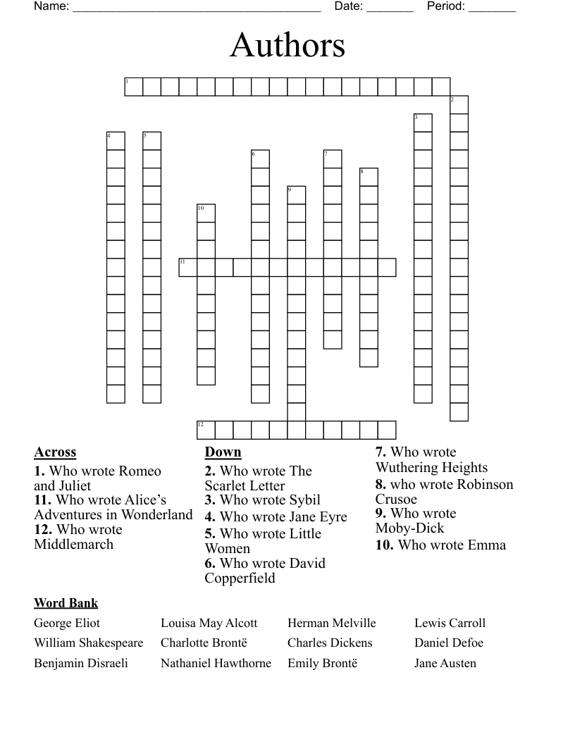 Authors Crossword Printable: Test Your Literary Knowledge