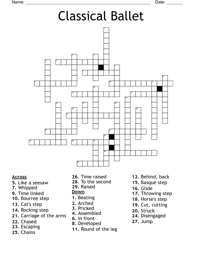 Ballet Terms Crossword Puzzle Printable