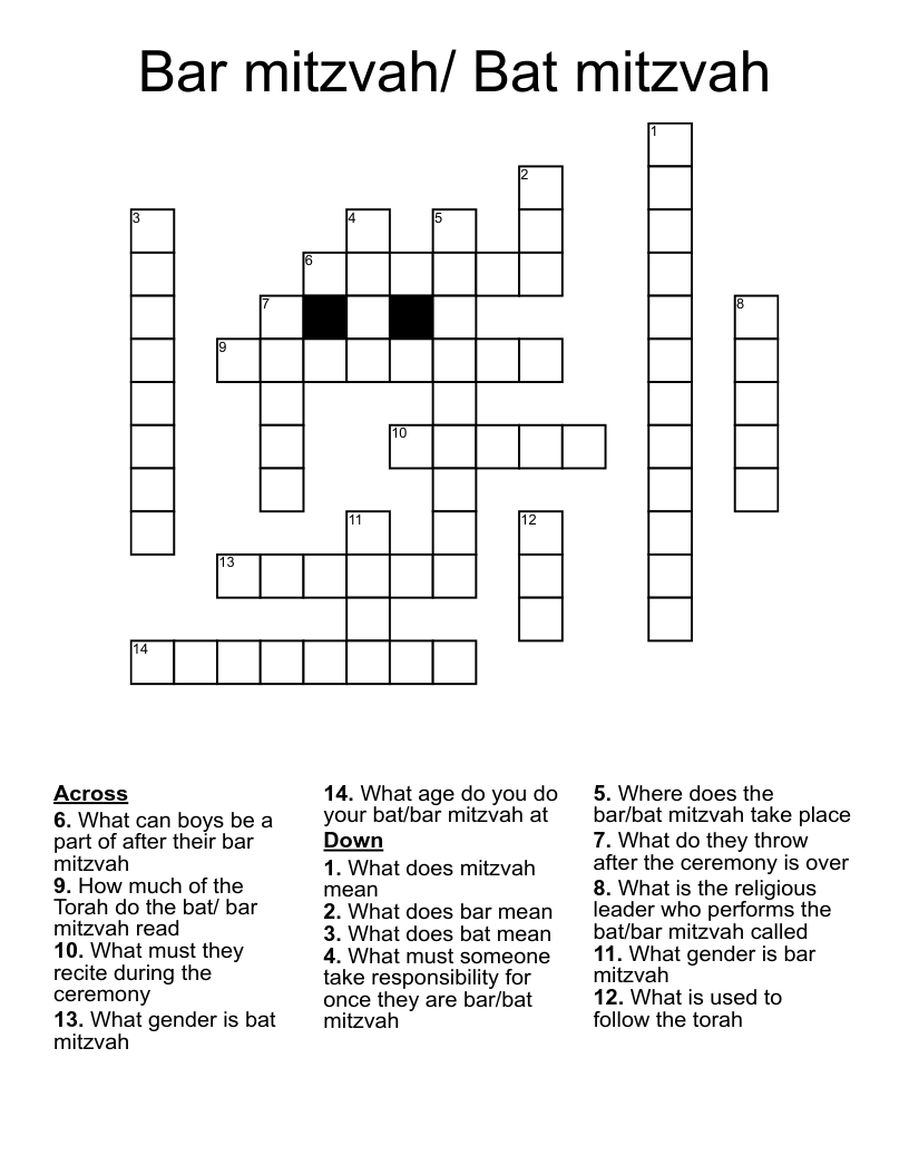 Bar Mitzvah Bat Mitzvah Crossword WordMint