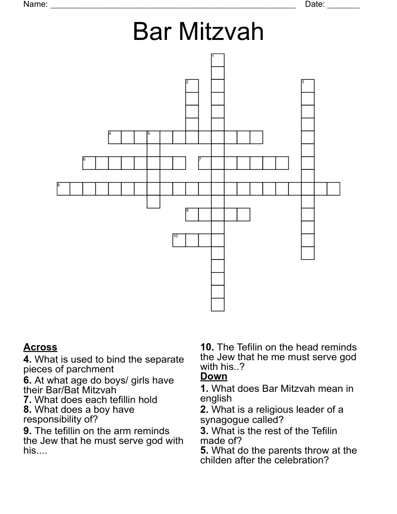 Bnai Mitzvah Crossword Printable: A Fun and Interactive Activity