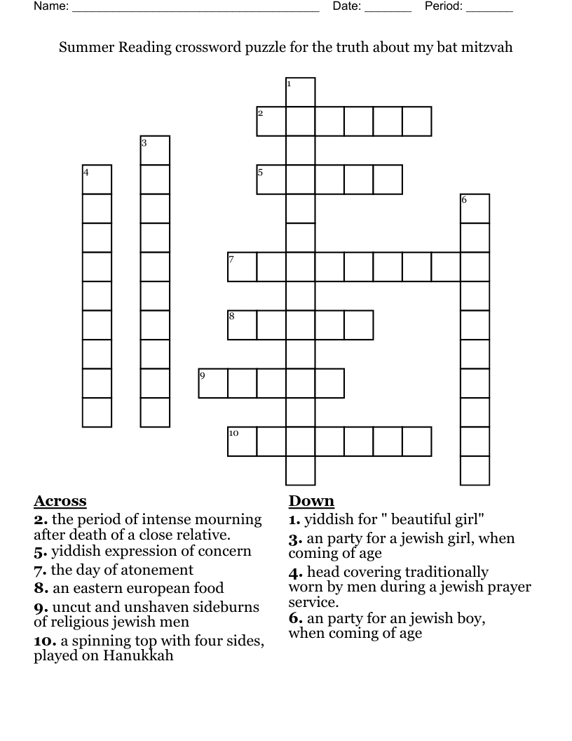 Summer Reading Crossword Puzzle For The Truth About My Bat Mitzvah WordMint