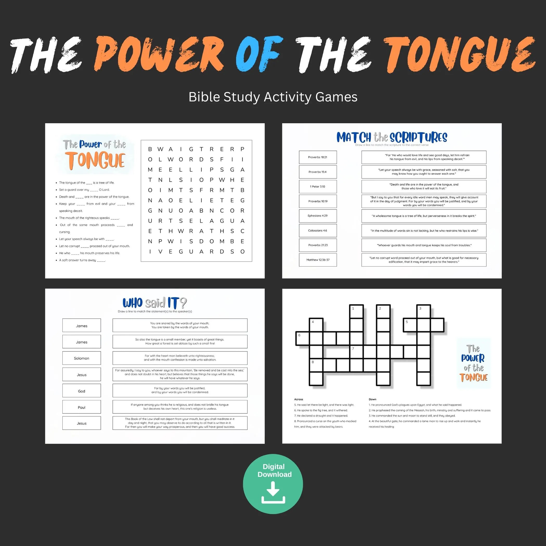 The Power Of The Tongue Christian Teen Kid Crossword Puzzle Word Search Children Church Sunday School Lesson Activity Bible Study Quiz Game Etsy