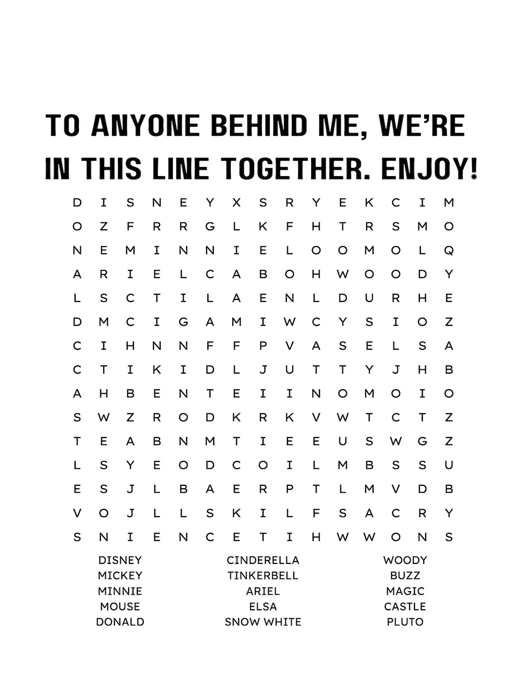 Disneyland Crossword WordMint