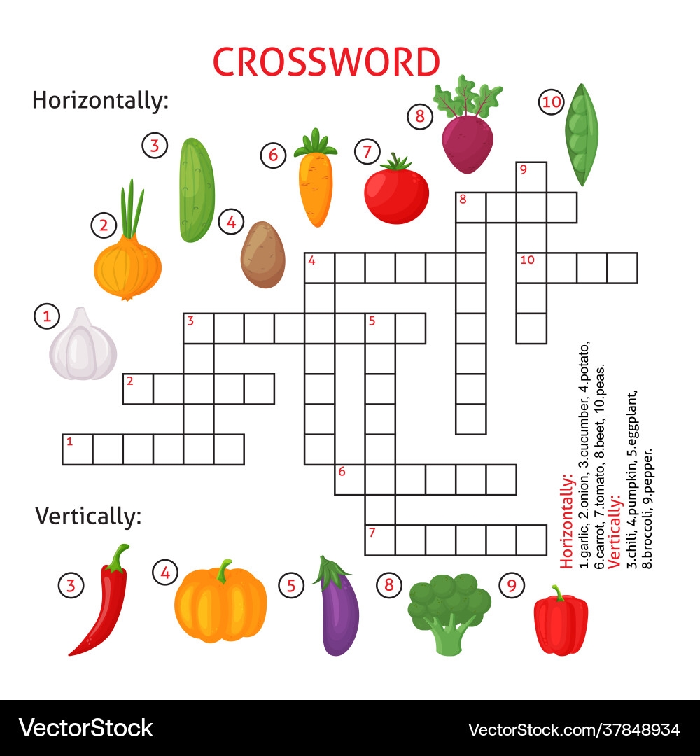 Vegetable Crossword Puzzle For Kids Royalty Free Vector
