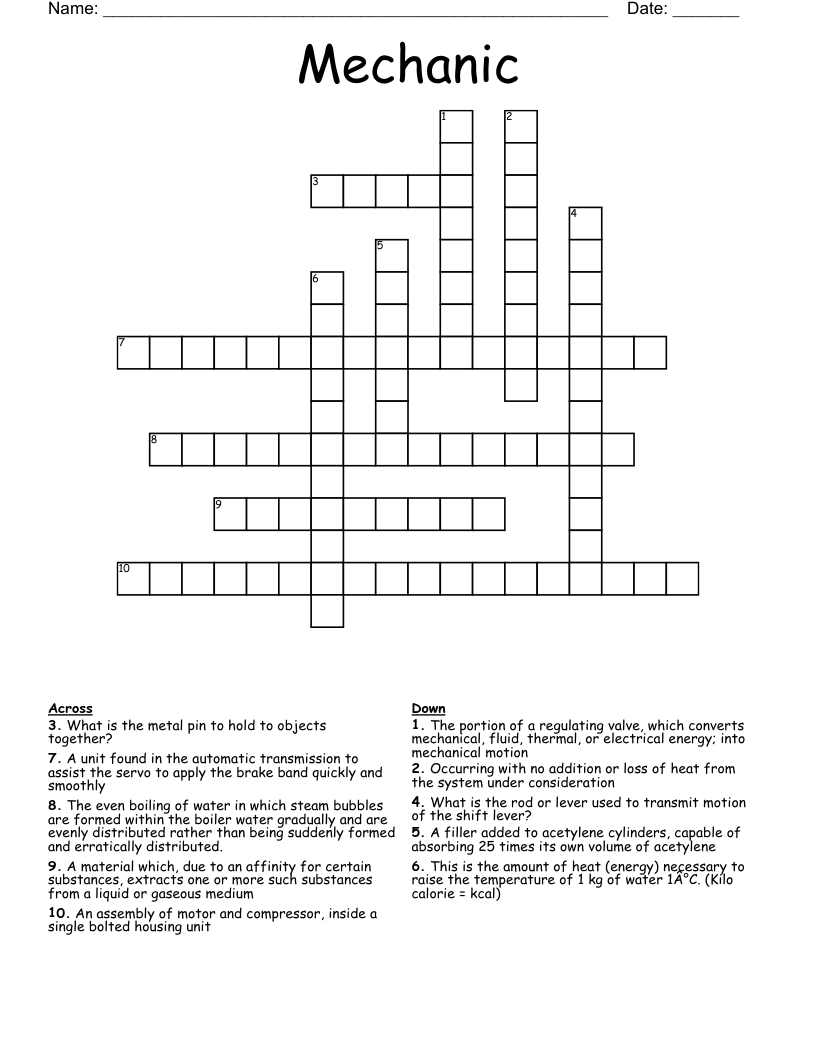 From tools and equipment to automotive parts and engine components, these crossword puzzles cover a wide range of topics related to the world of mechanics. They are a great way to learn new terms and concepts while having fun.