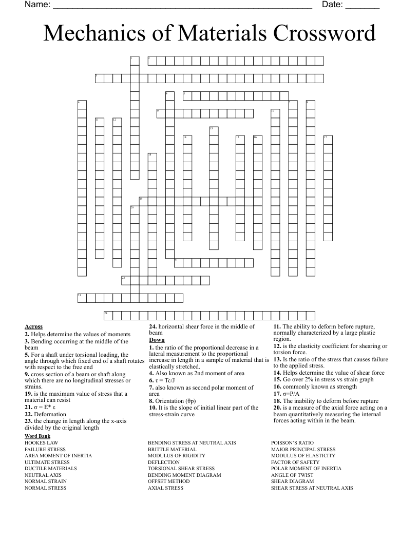 Mechanics Of Materials Crossword WordMint