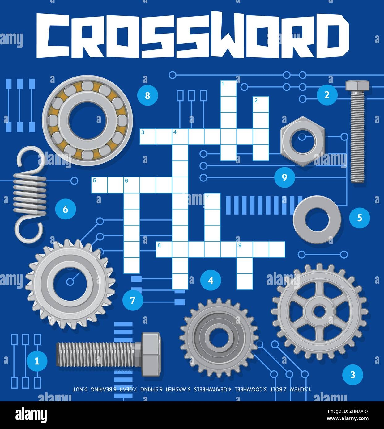 Car Service And Spare Parts Crossword Grid Worksheet Vector Find Word Quiz Game Kids Education Riddle Crossword To Guess Word Of Speedometer Car Tires And Engine With Ignition And Vehicle Wrench Stock