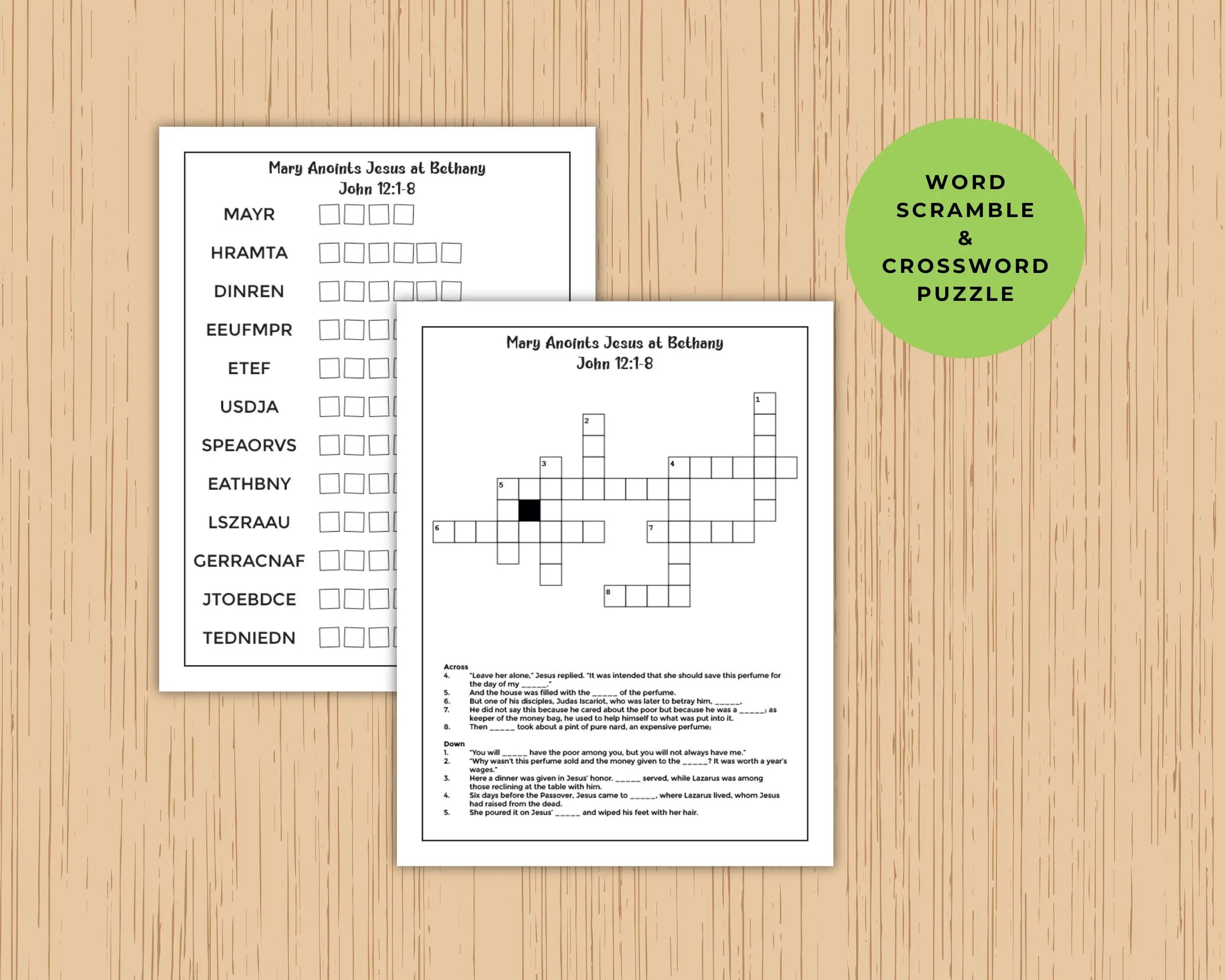Mary Anoints Jesus At Bethany Activity Pages Holy Week Activities Sunday School Activities Bible Class Lesson Pages Children s Church Etsy