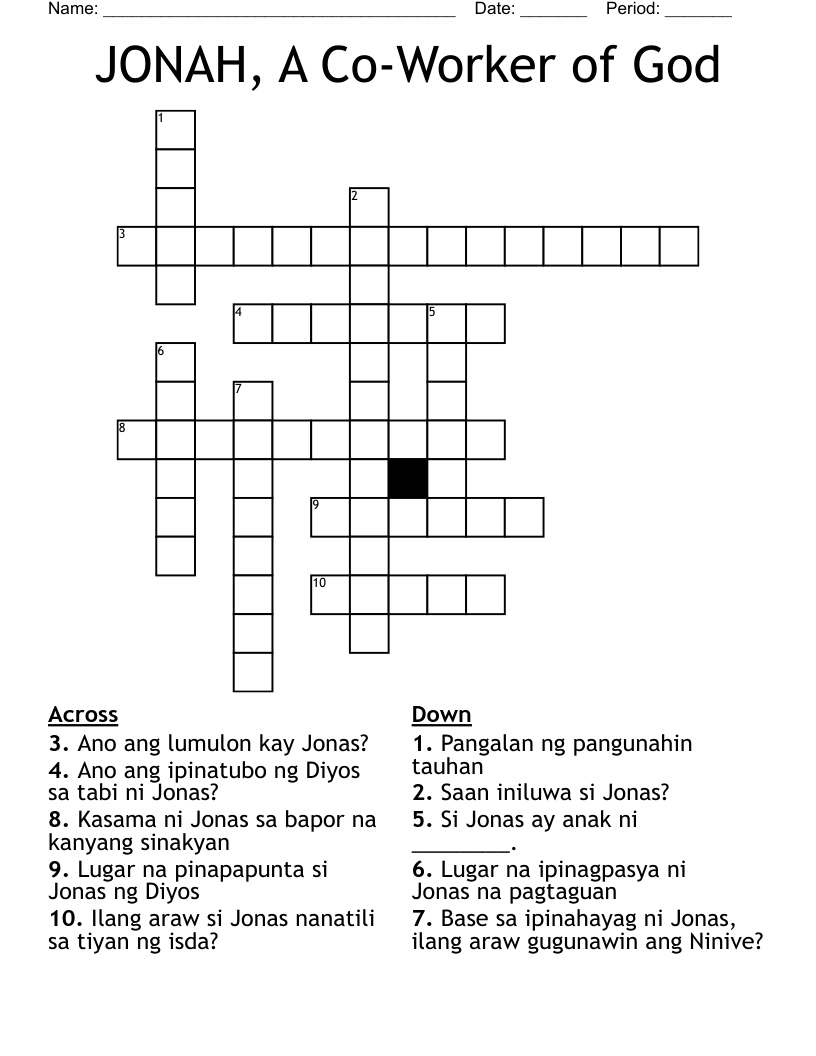 Jonah Crossword Printable: A Fun Challenge for Everyone