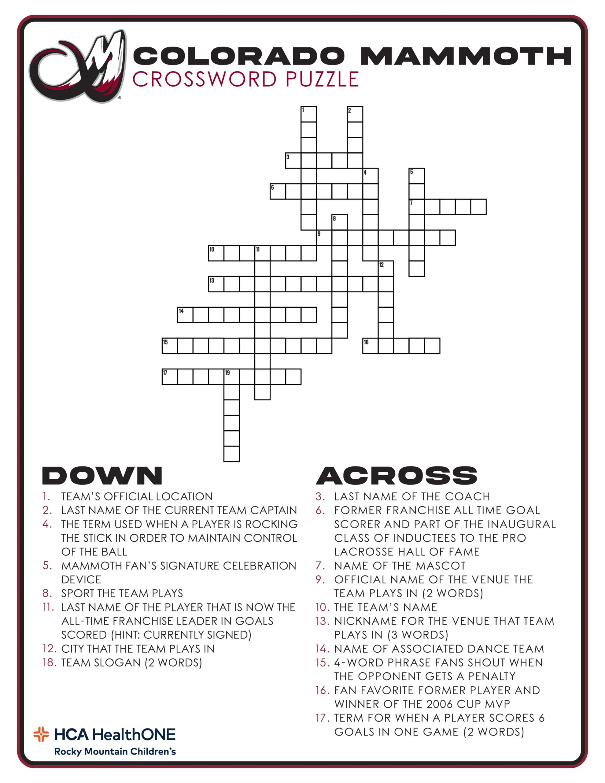 Fan Activities Colorado Mammoth Pro Lacrosse Team
