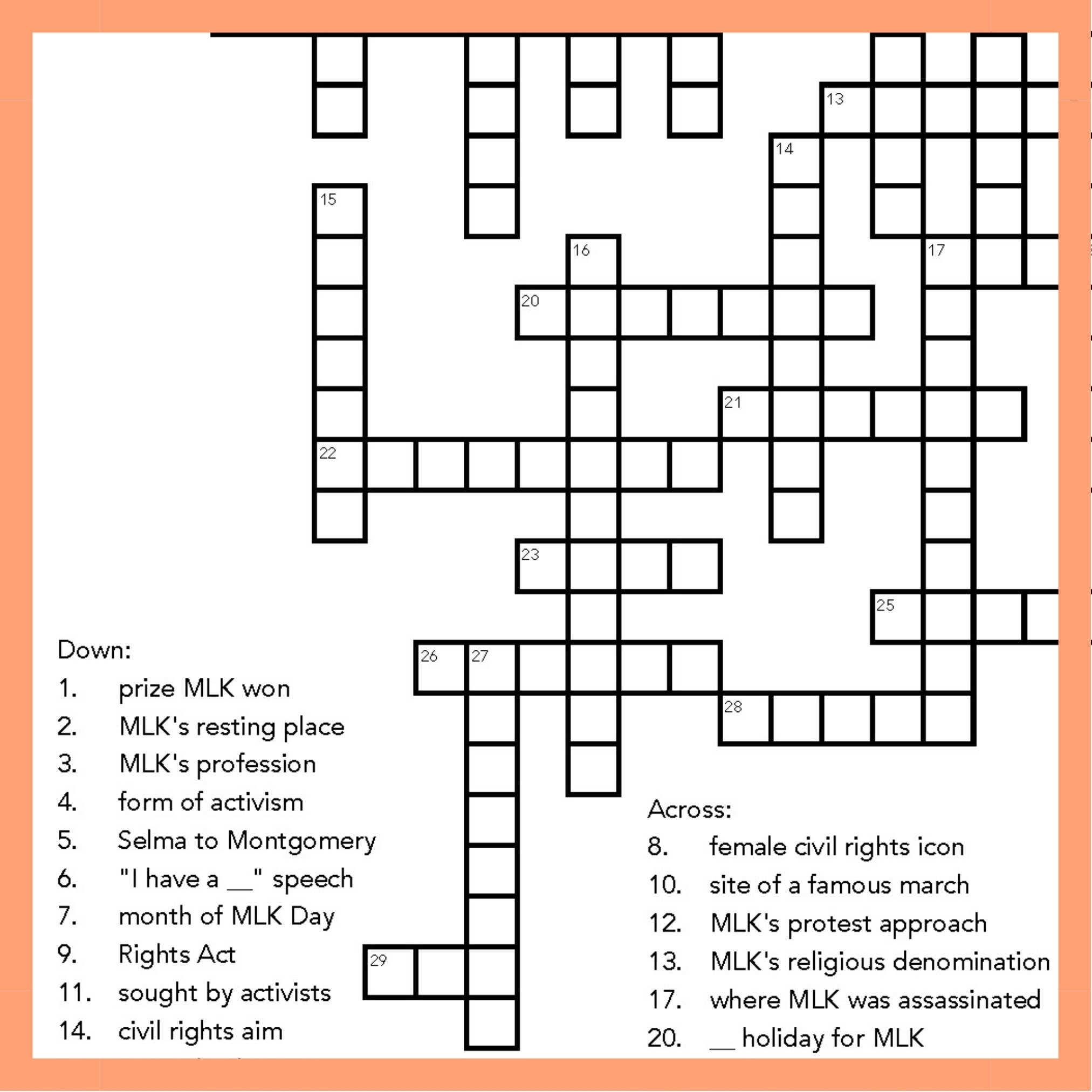 Martin Luther King Jr Crossword Puzzle Grab The Free Printable