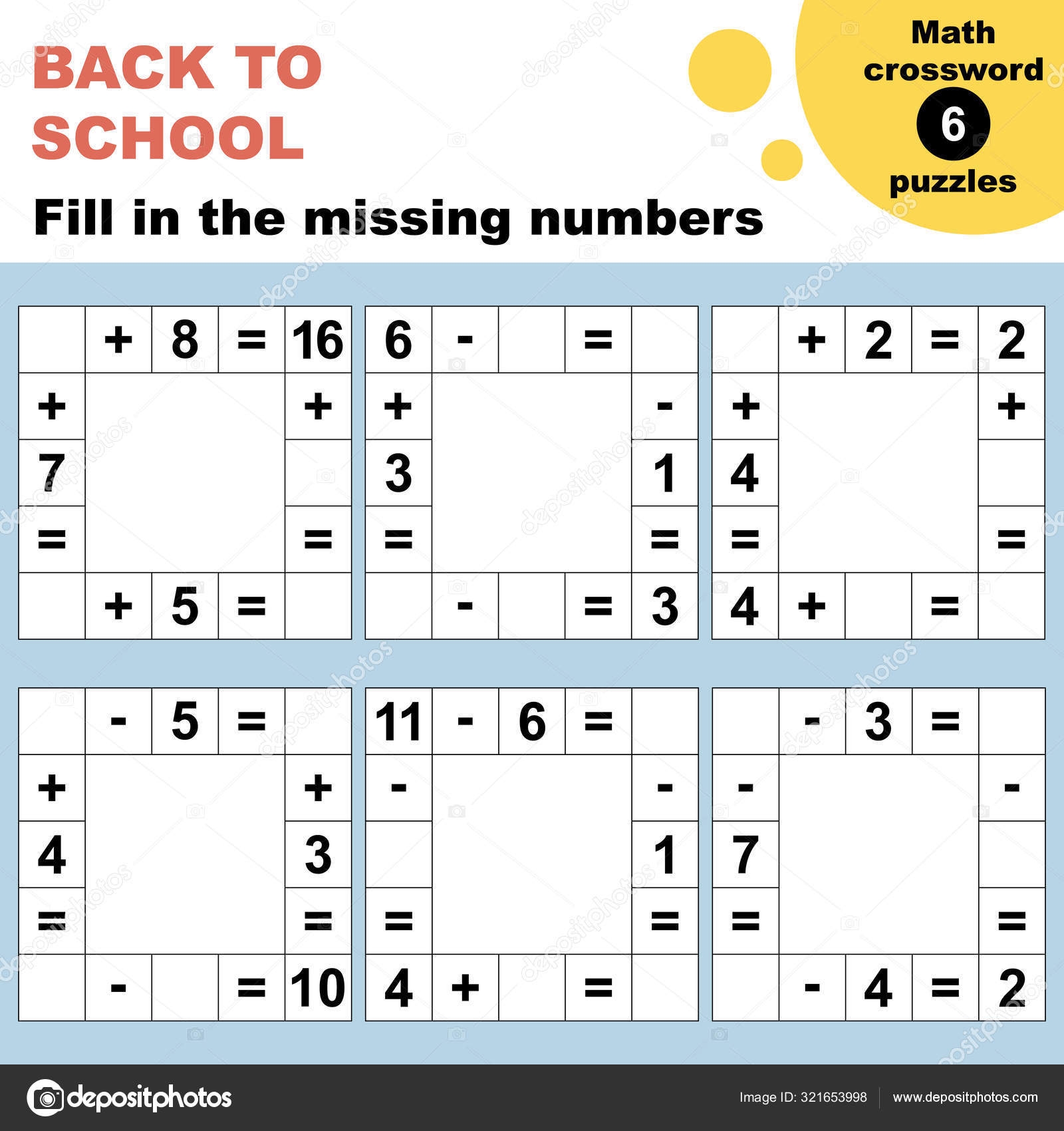 Math Crossword Puzzles Worksheet Easy Worksheet Children Preschool Elementary Middle Stock Vector By yekaterinalim 321653998