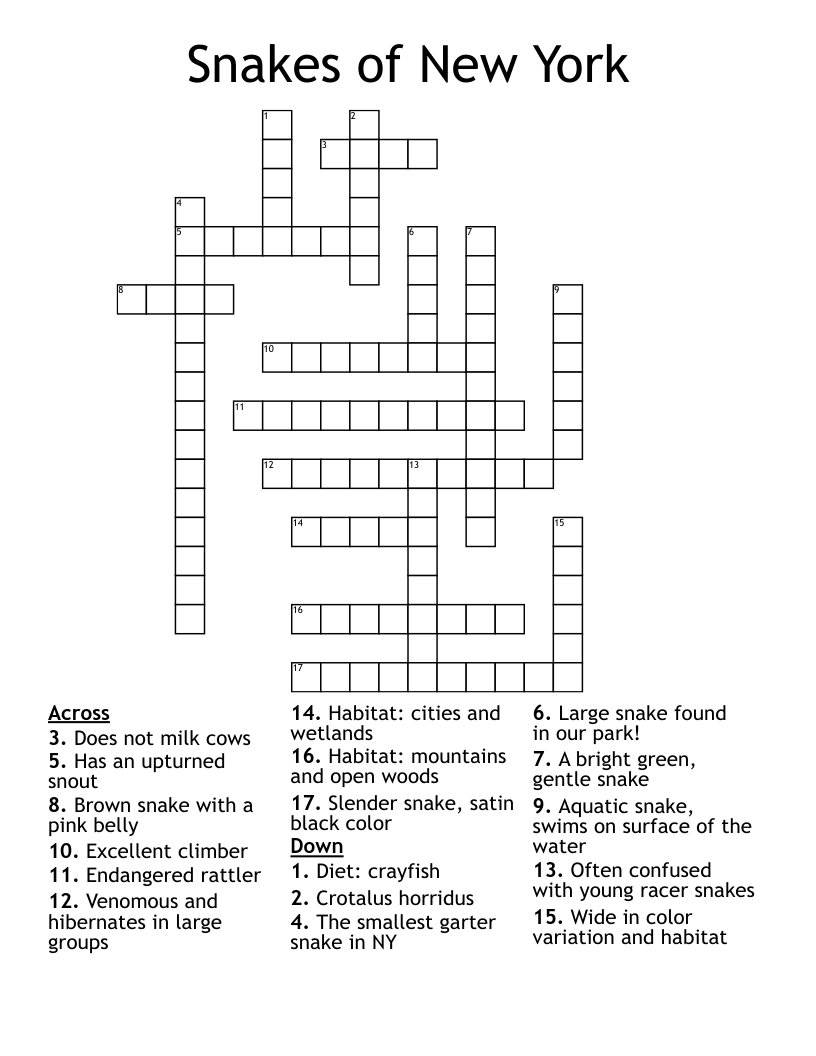 Snakes Of New York Crossword WordMint