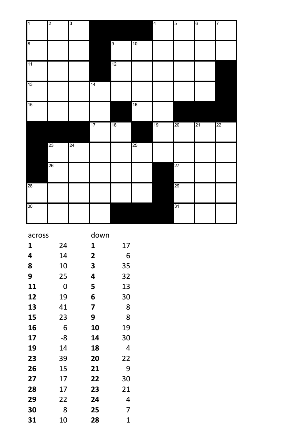 Number Crossword Puzzle Printable