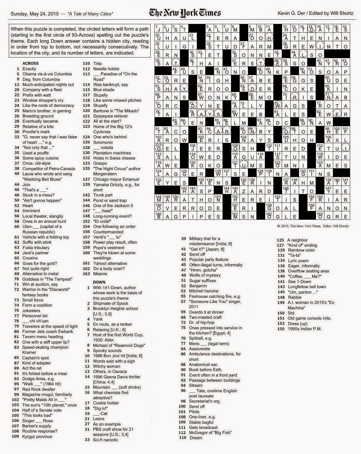 The New York Times Crossword In Gothic 05 24 15 A Tale Of Many Cities
