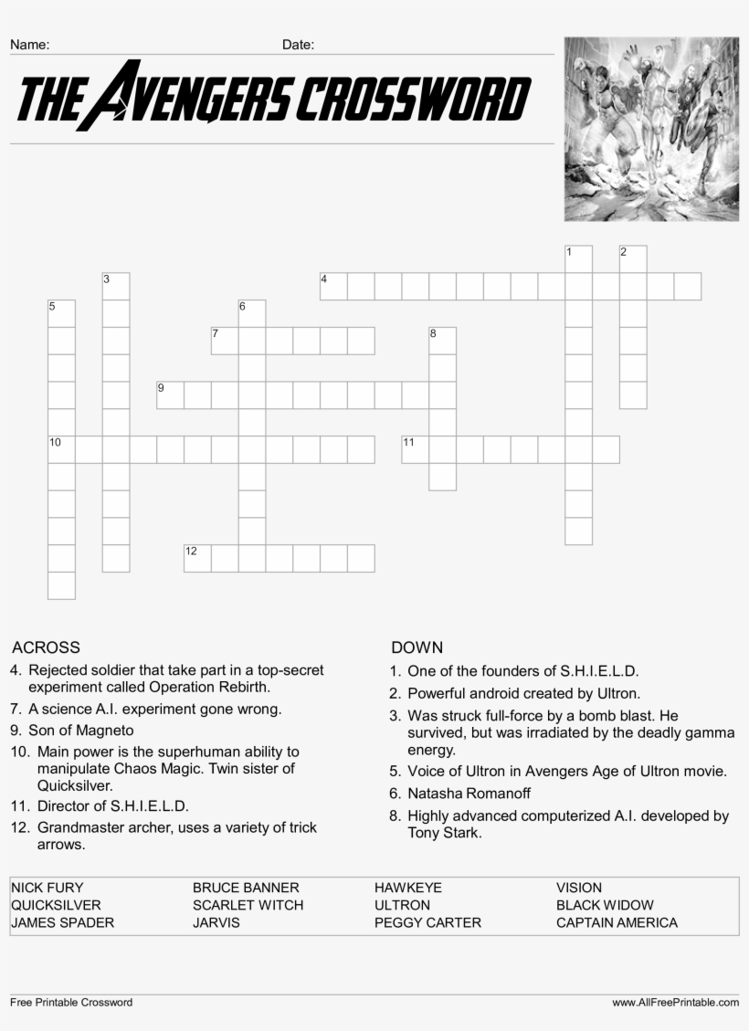 Printable Avengers Crossword Puzzles
