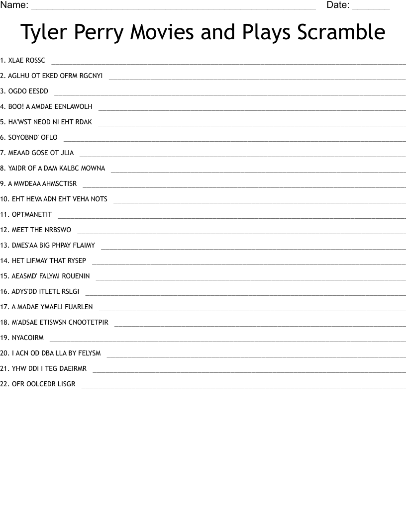 Tyler Perry Movies And Plays Scramble WordMint