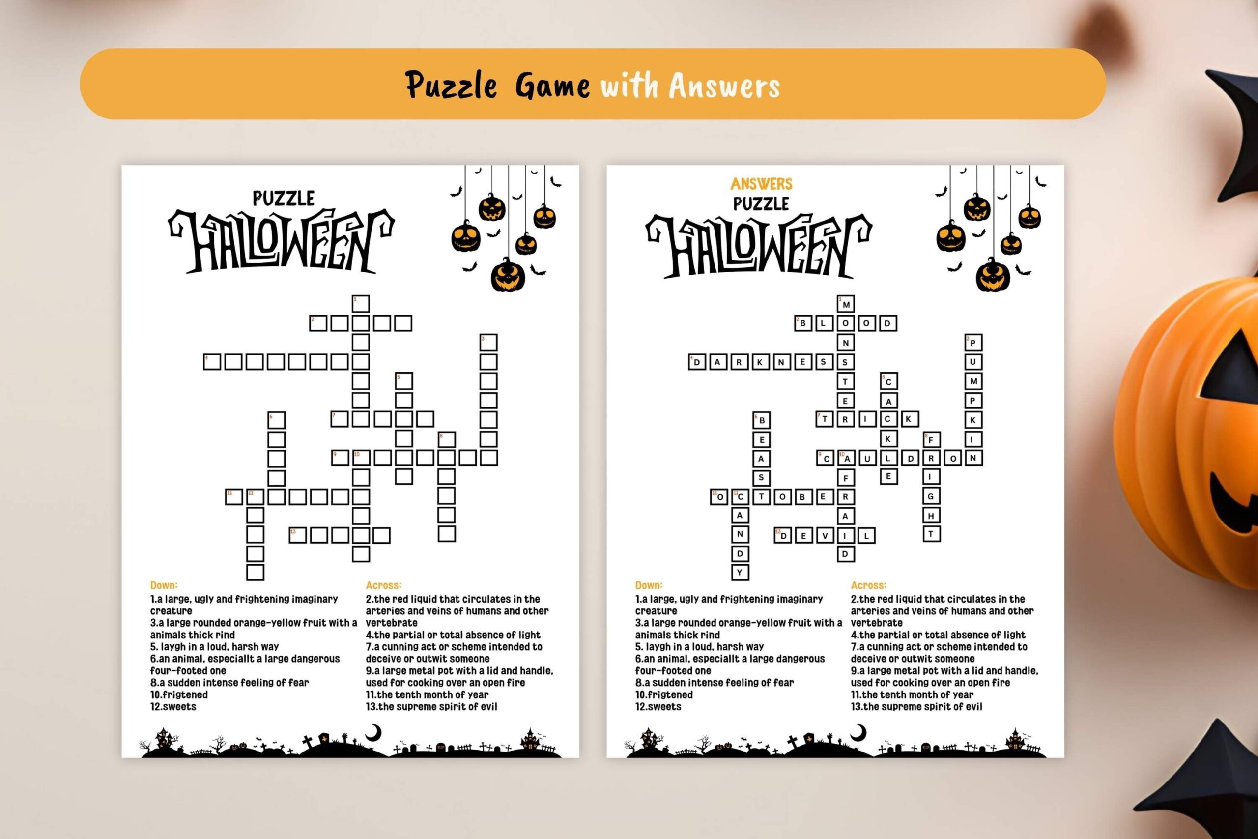 Halloween Crossword Puzzle And Word Search Party Game Printables Instant Download Etsy