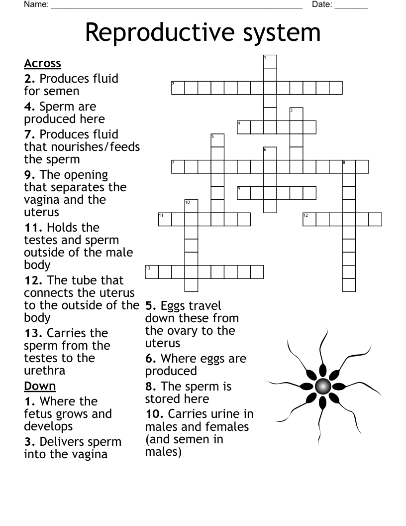 When you download a reproductive system crossword puzzle printable, you’ll find clues related to the organs and processes involved in reproduction. By solving the puzzle, you’ll reinforce your understanding of how the male and female reproductive systems work and interact to create new life.