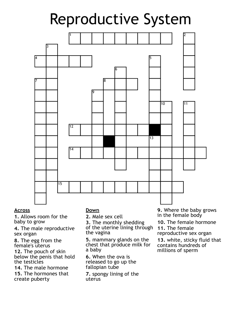 Whether you’re a teacher looking for a fun activity for your students or just someone who loves puzzles, a reproductive system crossword puzzle printable can be a great way to test your knowledge while having some fun.