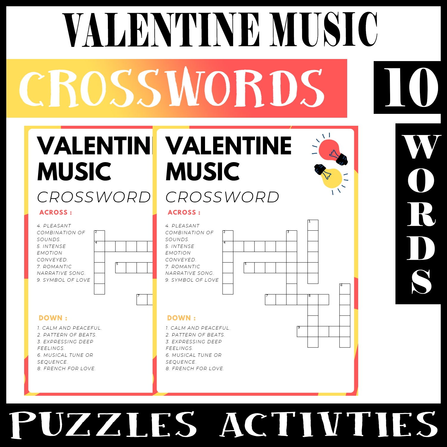 Valentine Music No Prep Crossword Puzzle Worksheet Activity For Morning Work Made By Teachers